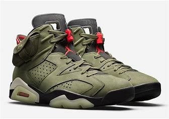 Air Jordan 6 'Travis Scott' (2019) Con bolsillo lateral y diseño en tonos oliva, uno de los más populares. |